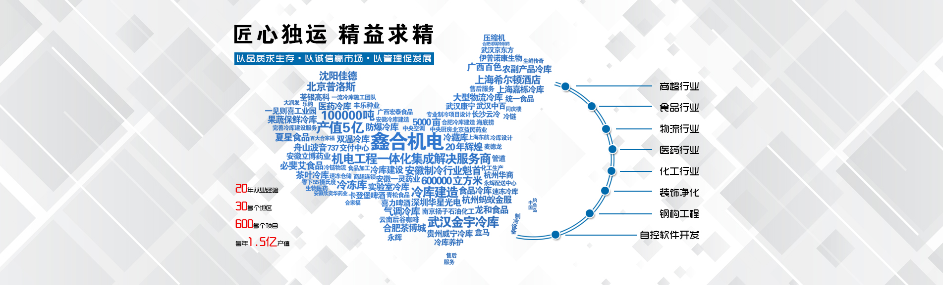 安徽鑫合機(jī)電設(shè)備有限公司于2002年組建運(yùn)營,專業(yè)從事冷凍、冷藏庫、中央空調(diào)、醫(yī)藥凈化工程的規(guī)劃設(shè)計(jì)、施工承建、售后服務(wù)為一體的綜合性工程公司,與100多家實(shí)力雄厚的大中型企業(yè)建立長期產(chǎn)略合作關(guān)系,其中有多家世界500強(qiáng)和上市企業(yè)。公司作為中國倉儲與配送協(xié)會會員單位、安徽省制冷學(xué)會理事單位、上海楊浦區(qū)制冷協(xié)會工程總承包負(fù)責(zé)單位,引領(lǐng)于行業(yè)前沿。我們將銘記給予我們大力支持的各界新老朋友及合作伙伴,我們將會保持“互惠互利、共同發(fā)展”的原則與您共創(chuàng)雙嬴的合作關(guān)系。